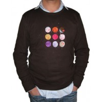 Tee-shirt entonnoir brodé 5 fils fluo.Peint en surimpression à la main 7 couleurs. Lavage conseillé à la main (ou machine